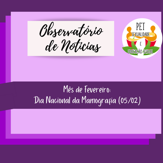 O observatório do mês escolheu o dia 05 de Fevereiro que é o Dia Nacional da Mamografia, data instituída pela Lei nº 11.695 de 12 de junho de 2008. A mamografia é um exame clínico capaz de identificar alterações na mama através de um equipamento utilizado chamado Mamógrafo.